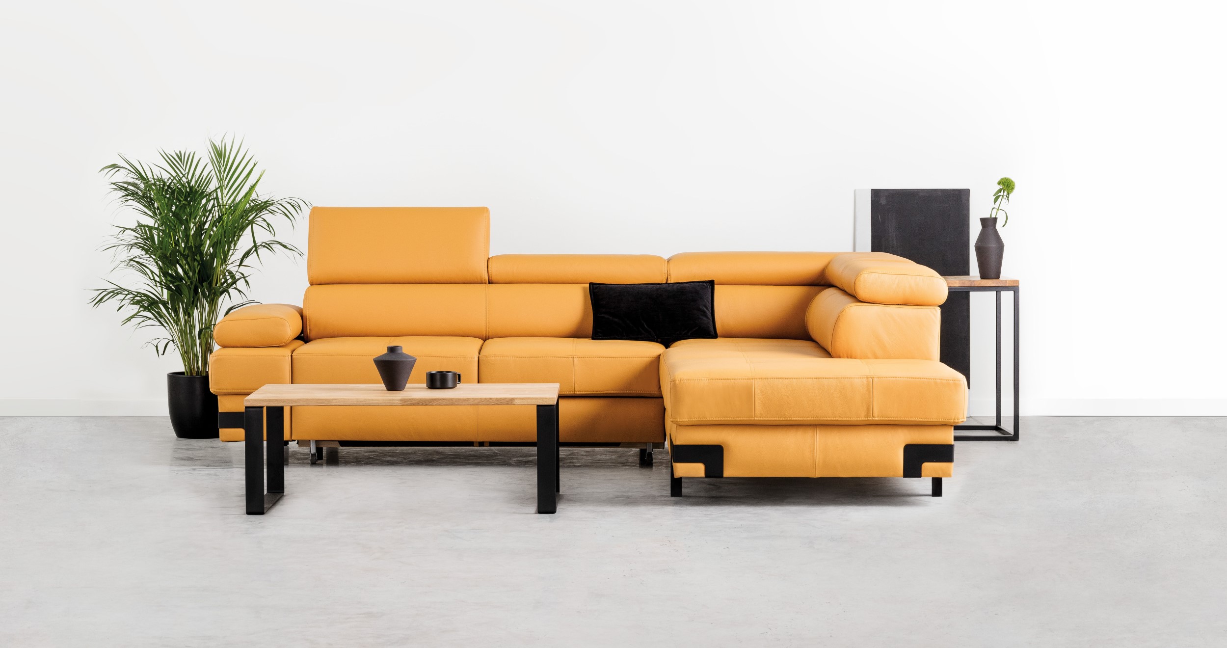 Modern design, comfort and functionality. A comfortable backrest with adjustable headrests and a movable armrest will allow each family member to relax according to their individual preferences. The sleeping function is a solution for all those who are looking for an additional place to rest, and a large bedding container in the ottoman will be perfect for storing an extra set of bedding or a blanket. Empoli has high unique legs which emphasise the character and line of the furniture.